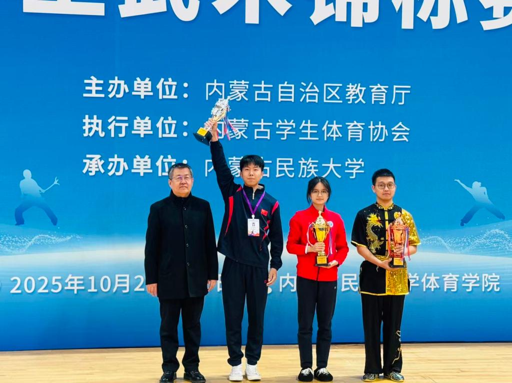 2025年10月22日—25日,由内蒙古自治区教育厅和自治区体育局联合举办的内蒙古自治区学生武术锦标赛在内蒙古民族大学顺利举行,吸引了来自全区39所学校的284余名运动员同台竞技。