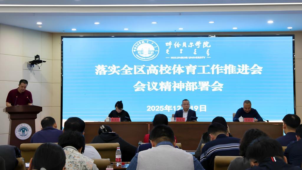 为深入贯彻落实新时代体育强国战略和全区高校体育工作推进会精神,系统总结学校“十四五”期间体育工作成效,科学谋划“十五五”时期体育事业高质量发展路径,12月19日,我校在崇文楼201会议室召开落实全区高校体育工作推进会会议精神部署会。校党委副书记、校长张玉柱出席会议并讲话,校党委委员、副校长张桂芝主持会议。校党委委员、副校长李跃武,各党政管理部门、二级学院主要负责人,体育学院(冰雪运动学院)全体教师及学生代表共同参会。
