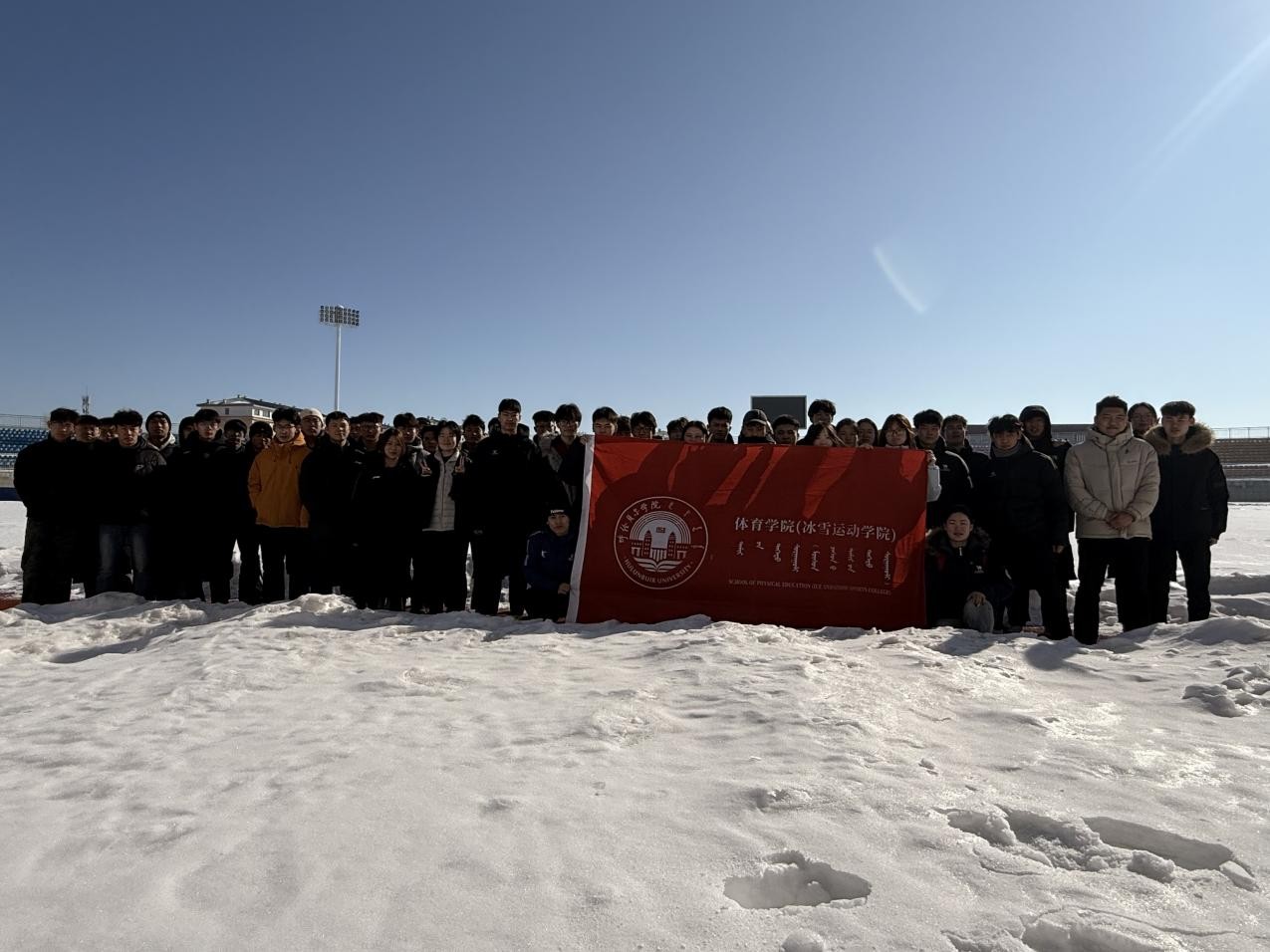 为响应“三亿人参与冰雪运动”号召,3月22日,体育学院(冰雪运动学院)在东山体育场举办了一场别开生面的冰雪趣味活动,113名同学共赴这场冬日限定的冰雪之约,在银装素裹中挥洒青春活力。