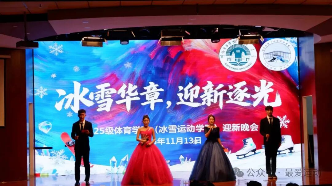 为欢迎2025级新生加入体育学院(冰雪运动学院)大家庭,营造温馨和谐的校园氛围,11月13日,体育学院(冰雪运动学院)“冰雪华章,迎新逐光”2025级迎新晚会在崇文楼B座小剧场举行。校团委书记王晓芳、体育学院(冰雪运动学院)党委书记胡日查毕力格、团学办全体成员及各班级辅导员,2025级新生及各年级代表200余人齐聚一堂,共赴这场青春盛宴。